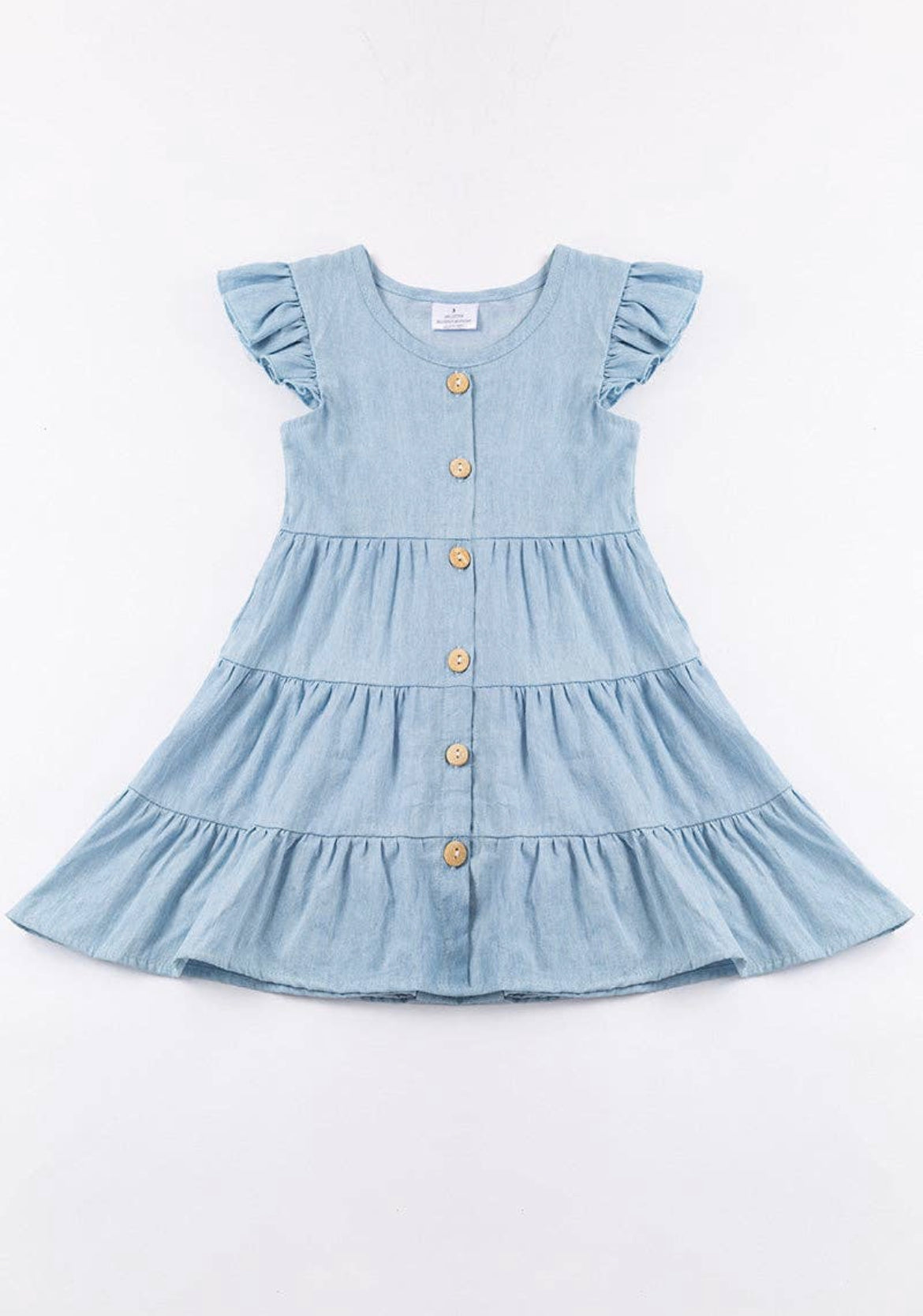 Look absolutely chic in this blue denim dress! Crafted from soft, lightweight fabric and detailed with tiers of ruffles and a row of gleaming buttons, this is the perfect way to dress up your jeans-and-tee look. A dress that'll make you stand out in the crowd? Ruffles and buttons!